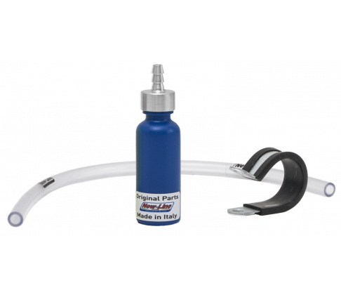 Lille overløbstank med holder og slange. Flere farver